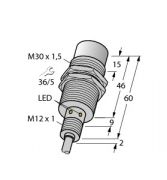 产品介绍 电感式传感器 用于食品行业 订货号: 1634843 - M30 x 1.5圆柱螺纹
